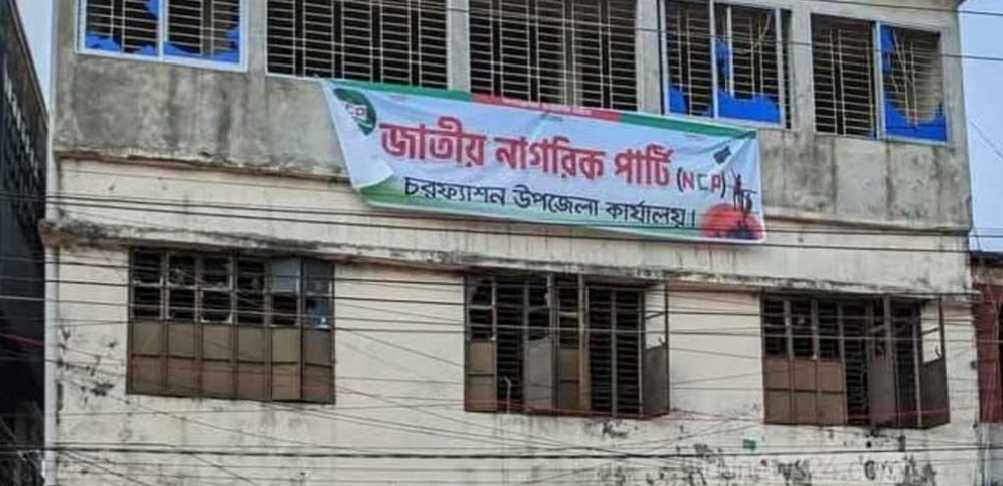ভোলার চরফ্যাশনে উপজেলা আওয়ামী লীগের কার্যলয়ে ব্যানার সাঁটিয়ে দলীয় কার্যক্রম শুরু করেছে জাতীয় নাগরিক পার্টি-এনসিপির স্থানীয় নেতাকর্মীরা।শনিবার দুপুরে চরফ্যাশন পৌর সদরের কলেজ রোডস্থ উপজেলা আওয়ামী লীগের কার্যালয়টিতে এনসিপির ব্যানার সাঁটিয়ে প্রস্তুতিমূলক সভা অনুষ্ঠিত হয়।গেল বছরের ৫ অগাস্ট আওয়ামী লীগ সরকারের পতনের পর উপজেলা আওয়ামী লীগের কার্যালয়টি ভাঙচুর করে পুড়িয়ে দেওয়া হয়। লুটে নেওয়া হয় আসবাবপত্র। এরপর থেকে পরিত্যক্ত অবস্থায় ছিল কার্যালয়টি।সরকার পতনের ৯ মাস পর শনিবার জাতীয় নাগরিক পার্টির চরফ্যাশন উপজেলা প্রতিনিধি দাবি করা অহিদ ফয়সালের নেতৃত্বে আওয়ামী লীগের দলীয় কার্যালয়টিতে নিজেদের ব্যানার সাঁটিয়ে কার্যক্রম শুরু হয়।সেখানে গিয়ে দেখা যায়, তিনতলার কার্যালয়টিতে আওয়ামী লীগকে নিষিদ্ধ করার দাবির কর্মসূচির প্রস্তুতিমূলক সভা করছেন এনসিপির নেতারা। ভবনের ছাদে মাইক লাগিয়ে চালানো হচ্ছে এনসিপির প্রচার-প্রচারণা।