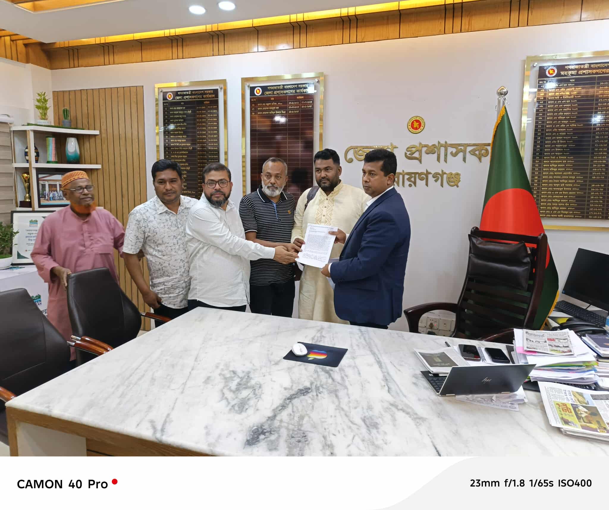 নারায়ণগঞ্জ জেলা প্রশাসক, জাহিদুল ইসলাম, এর কার্যালয়ে, স্মারক লিপি প্রদান করেন,নারায়ণগঞ্জের বিশিষ্ট ব্যবসায়ীর সংগঠনের কর্মকর্তাবৃন্দ,জেলা প্রশাসক মহোদয়, সংগঠনের নেতৃবৃন্দ নিকট জানতে চাইলে, তারা তাদের সমস্যাবলী তুলে ধরেন,সিরাজউদ্দৌলা, কালিবাজার সড়কটি ,প্রায় সব সময় অস্বাভাবিক যানজট লেগেই থাকে, তার মধ্যে কদম রসুল সেতুর পশ্চিম ধারে অংশটি সংযুক্ত করা হলে , অদ্য এলাকার যানজট আরো বৃহৎ আকারে হওয়ার সম্ভাবনা রয়েছে,কারণগুলি হলো, স্থাপিত আছে, নারায়ণগঞ্জের ঐতিহাসিক, হাই স্কুল, পাশে আছে নারায়ণগঞ্জ কলেজ,হিন্দু সম্প্রদায়ের, কালীমন্দির, শ্যামামন্দির,নারায়ণগঞ্জের বৃহত্তম কাপড়ের মার্কেট, মেডিসিনের মার্কেট, কাঁচামালের ফলের আরত,রেল স্টেশন ,বাস টার্মিনাল লঞ্চঘাট এর সংযোগসহ রেল ক্রসিং,স্কুল-কলেজের হাজার হাজার ছাত্রছাত্রীসহ এলাকার জনসাধারণের চলাচলের এমনিতেই নানার সমস্যার সম্মুখীন হচ্ছেন, প্রায় দুর্ঘটনা মৃত্যু পর্যন্ত হচ্ছে,তারমধ্যে কদম রসুলের সেতুর পশ্চিম ধারের সংযুক্ত হলে, জনসাধারণের উপকারের থেকে অপকার বেশি হবে বলে ধারণা করা হচ্ছে।জেলা প্রশাসক মহোদয় সকল বিষয় অবগত হয়ে, উক্ত বিষয়ে উদ্বোধন কর্মকর্তার নিকট উক্ত বিষয়ে সুপারিশের প্রধান করবেন বলে আশ্বাস প্রদান করেন।স্মারকলিপির প্রদানের সময় যারা উপস্থিত ছিলেন,মোঃ আকবর হোসেন ওষুধ ব্যবসায়ীডাক্তার সাইফুল ইসলাম,মোহাম্মদ ইব্রাহিম, মোঃ তানভীর হোসেন, মোহাম্মদ শফি উদ্দিন আহমেদ,হাজী মোহাম্মদ নাজির খান,মমর সুমন চৌধুরী, মোঃ জুয়েল হোসেন, সহ ভদ্র এলাকায় বিশিষ্ট ব্যবসায়ী বৃন্দ।
