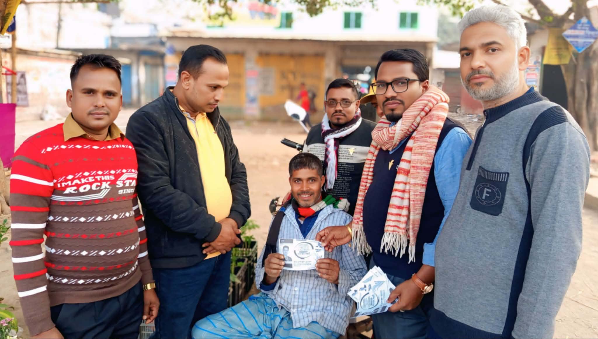 সাংগঠনিক সম্পাদক হাজী মোহাম্মদ নাজির খানের উপস্থিতিতে, মেহেদী হাসান মহোদয় প্রতিবন্ধীদের সাহায্যে নগদ টাকা প্রদান করেন,